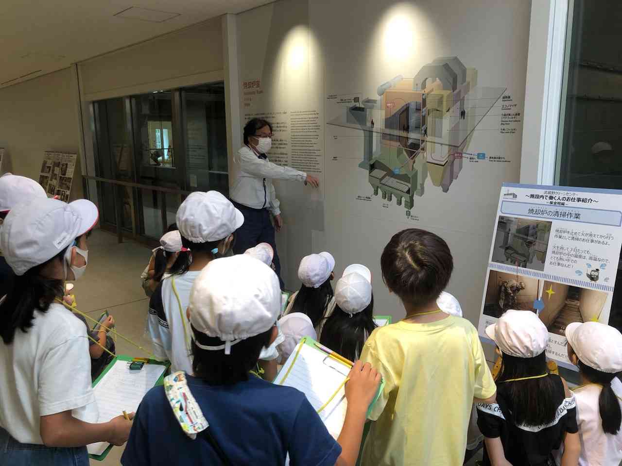 四年生は、学校から歩いて15分ほどのところにある武蔵野クリーンセンターに行き、ごみの選別の仕方、焼却や処理の方法について学びました。焼却で出た灰はエコセメントとして再利用されていることや、リチウム電池の混入が原因として施設が火事になってしまったことなどを学び、ごみの分別をすることの大切さや、持続可能な社会を作るために自分たちができることについて深く考え、学ぶことができました。【添付ファイル】