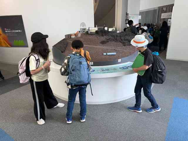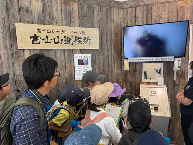 午前中は富士山レーダードーム館を見学しました。昭和39年に富士山頂に設置され、35年間台風の砦となって日本を守った富士山のレーダー。子どもたちは気象に関する展示やブリザード体験などを楽しみながら見学していました。見学後は外の広場でお弁当を食べて、いざ、富士山五合目へ。